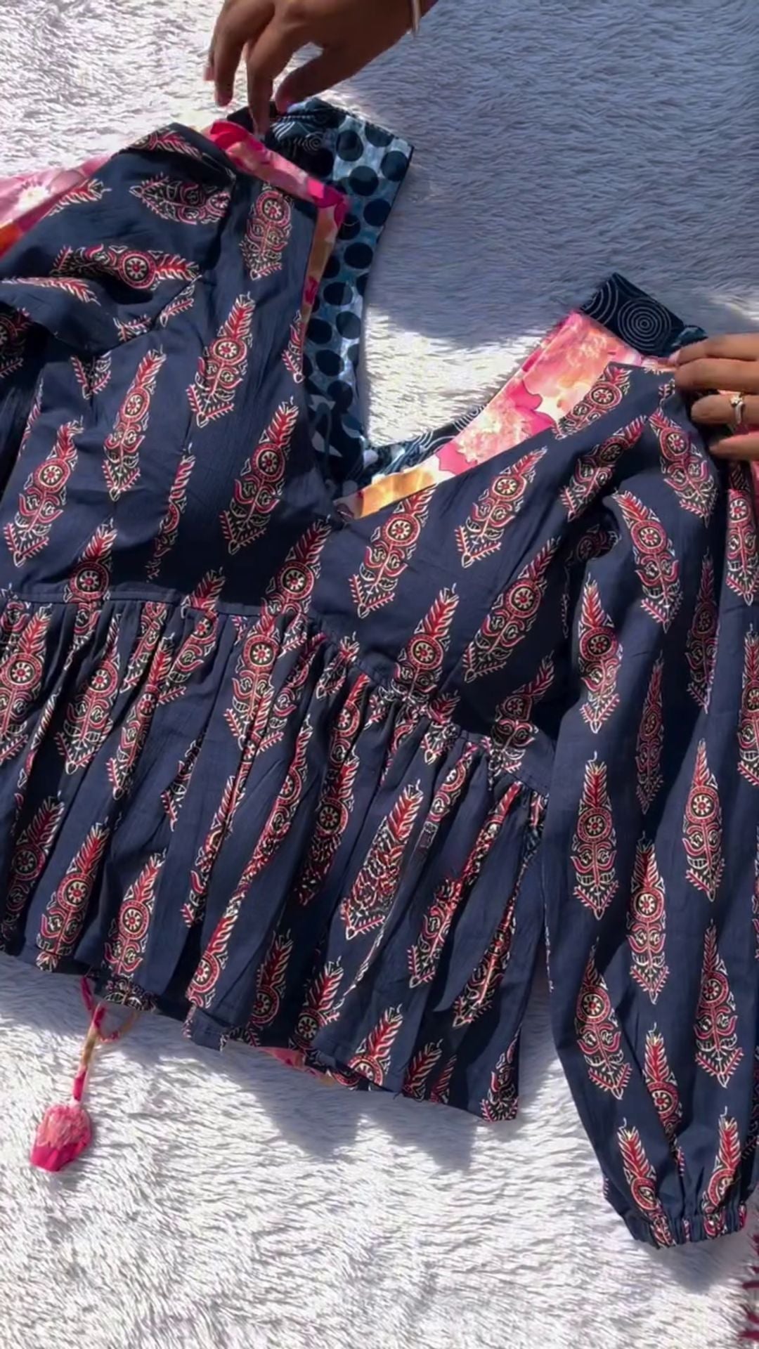 Festive Sp Girls Floral Printed Cotton Blue Top