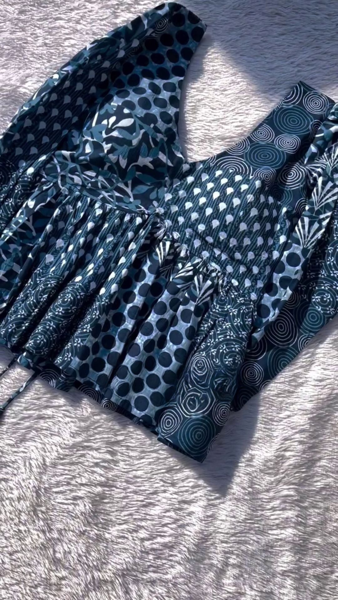 Festive Sp Girls Floral Printed Cotton Navy Top