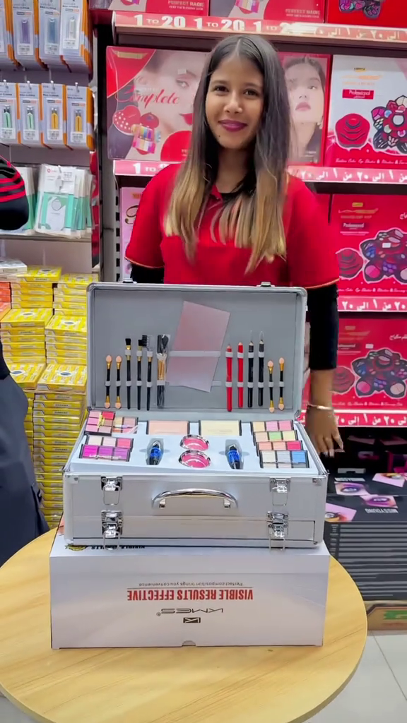 The kit includes a wide array of essential beauty products, including foundation, blush, eyeshadow, mascara, and eyeliner, all in a convenient, all-in-one set.